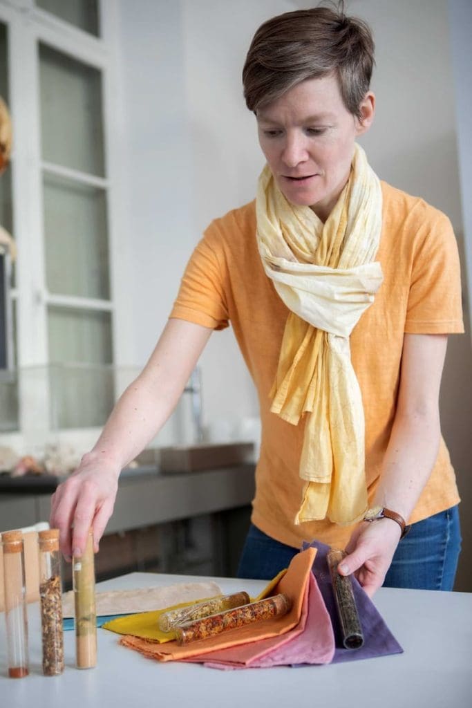 Teinturière spécialisée en colorants naturels, développant des recettes de couleurs pour l’industrie textile et du cuir.